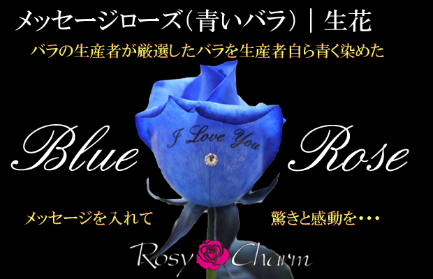 RosyCharmでは、新商品のブルーローズ|青いバラのメッセージローズ(生花)が