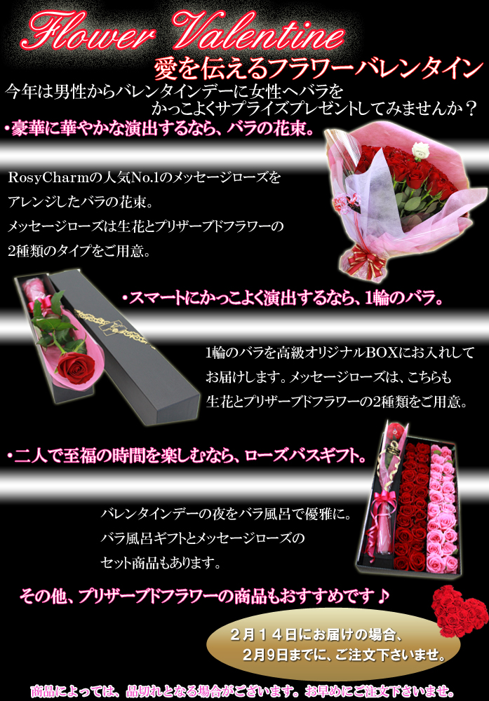 2月14日バレンタインデーにお届けは、2月9日までにご注文下さいませ。