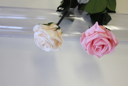 白のメッセージローズ プリザですが、バラの色が白と言っても実は少しピンクがかった白なんです・・・