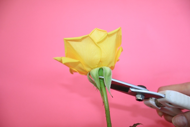 3.バラの花首を切り取ります。